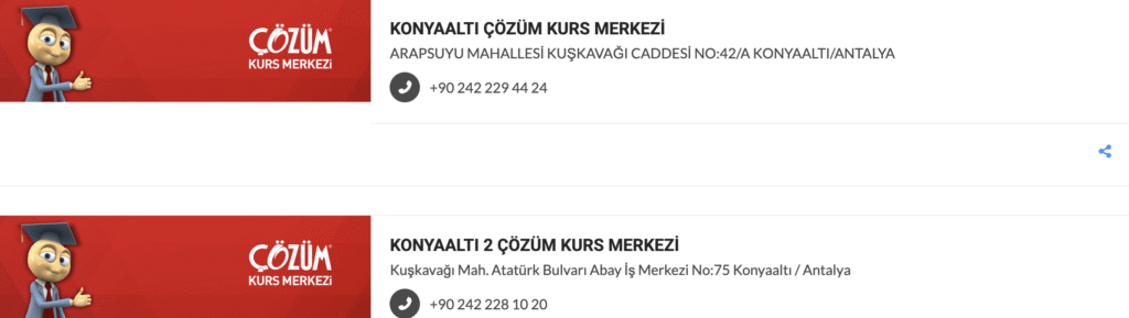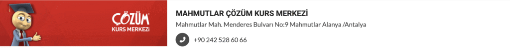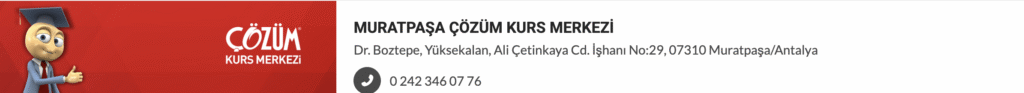 Antalya Çözüm Kursların konumlarına ve iletişim bilgilerine ulaşmak için tıklayınız.