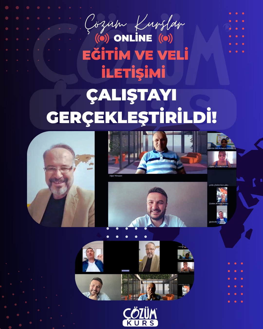 Türkiye geneli Çözüm Kursların tamamının katılım sağladığı son derece verimli bir çalıştay gerçekleştirildi. Çözüm Kurslar G.Md. Sait Konyalıgil ve G.M.Yard. Bahadır Emre Göncü’nün katılımları ile gerçekleşen programda öğretmen ve veliler için daha verimli kurumlar haline gelebilmek adına yapılabilecek çalışmalara değinildi.