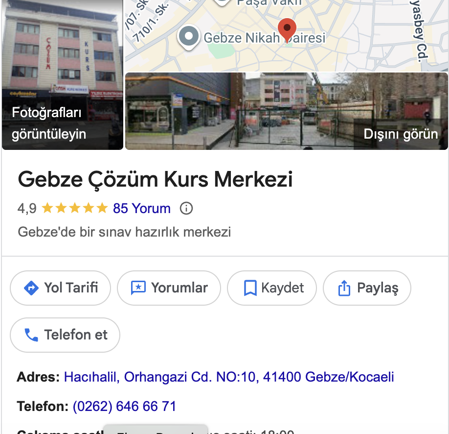 Gebze Çözüm Kurs Yorumlarını okumak için tıklayınız.