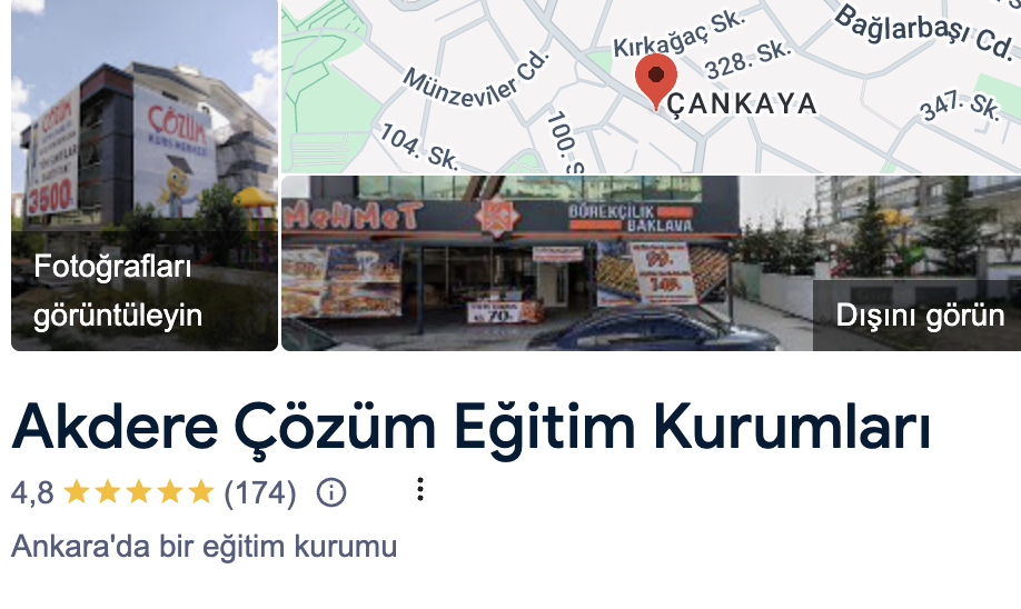 Akdere Çözüm Kurs Adres: 50. Yıl, Mehmet Ali Altın Cd No:18, 06590 Çankaya/Ankara