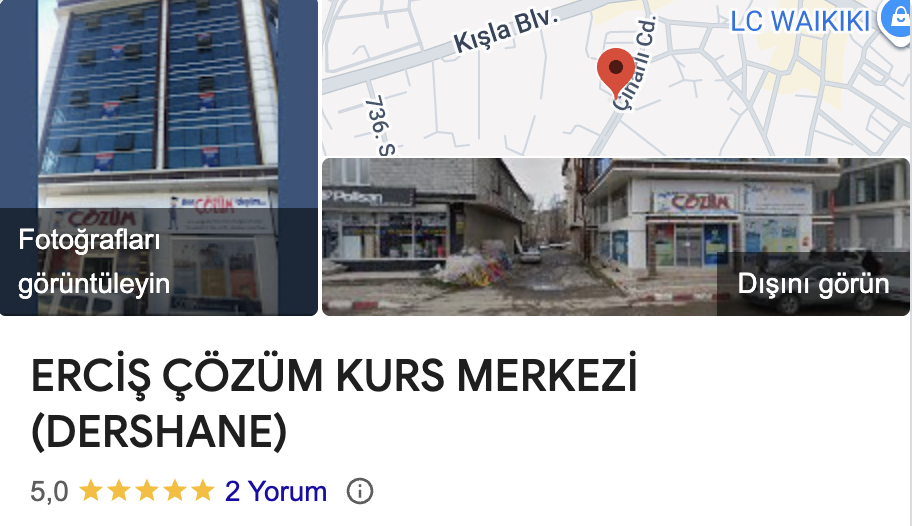 Bir dershane araştırması içerisindeyseniz mutlaka google yorumlarını ve google puanını göz önüne almanızı öneriyoruz. Bu bağlamda önemli olan şey gerçek yorumları görme fırsatınızın olmasıdır. Erciş Çözüm google puanı 5 yıldız olan bir kurumdur.